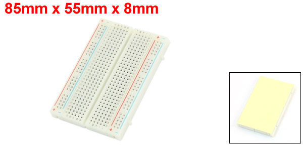 Product Name Solderless Breadboard Color White Size 85 x 55 x 8mm /3.3" x 2.2" x 0.3" (L*W*T) Main Material Plastic, Electronic Components Tie Point Aquantity 400 Pcs Net Weight 40g Package Content 1 x Solderless Breadboard - Reviews