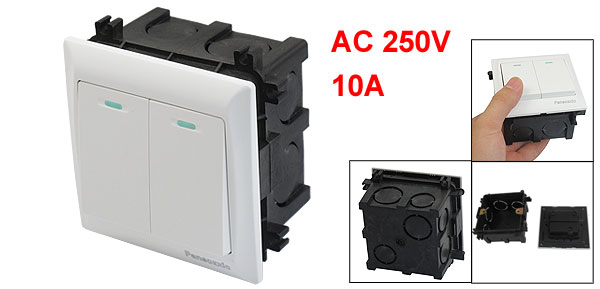 White AC 250V 10A 2 Gang Circuit Wall Panel Switch w Flush Mount Box