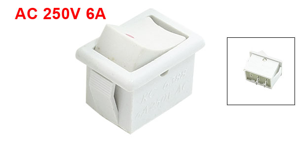 White AC 250V 6A 2 Pin Single Pole Single Throw SPST ON OFF Rocker Switches