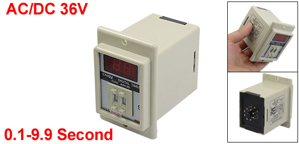 Product Name Digital Time Relay Type ASY-2D Rated Voltage AC/DC 36V Frequency 50/60 Hz Contact AC 220V 5A Non-inductive Load Time Range 0.1-9.9 Second Mount Size (Approx.) 49 x 68 x 61mm/ 1.9" x 2.7" x 2.4" (L*W*H) Mount Hole Diameter 4mm/ 0.16" Total Size 57 x 90 x 86mm/2.2" x 3.5" x 3.4"(L*W*H) Color White Net Weight 129g Package Content 1 x Digital Time Relay - Reviews