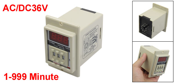 DetailsWhite AC/DC 36V Power on Delay Timer Time Relay 1-999 Minute 8 Pins ASY-3D  Product Name Digital Time Relay Type ASY-3D Rated Voltage AC/DC36V Frequency 50/60 Hz Contact AC 220V 5A Non-inductive Load Time Range 1-999 Minute Mount Size (Approx.) 49 x 68 x 61mm/ 1.9" x 2.7" x 2.4" (L*W*H) Mount Hole Diameter 4mm/ 0.16" Total Size 57 x 90 x 86mm/2.2" x 3.5" x 3.4"(L*W*H) Color White Net Weight 134g Package Content 1 x Digital Time Relay