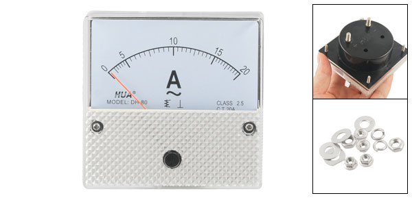 Product Name Analog Amperemeter Measuring Ampere Range AC 0-20A Accuracy Class 2.5 Meter Face Size(Approx) 8 x 8 x 3.5cm / 3.1" x 3.1" x 1.4"(L*W*T) Thread Dia(Approx) Big One: 0.5cm / 0.2"