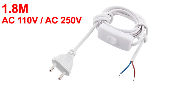 Product Name Power Cord Inline Switch Plug Type EU Plug Cable Length 1.8m / 6Ft Suitable Rating AC 110V / AC 250V Rating AC 250V 6A Switch Size 60 x 26 x 21mm/2.4" x 1" x 0.8"(L*W*T) Main Material Plastic, Metal Color White Weight 77g Package Content 1 x Power Cord w Inline Switch - Reviews