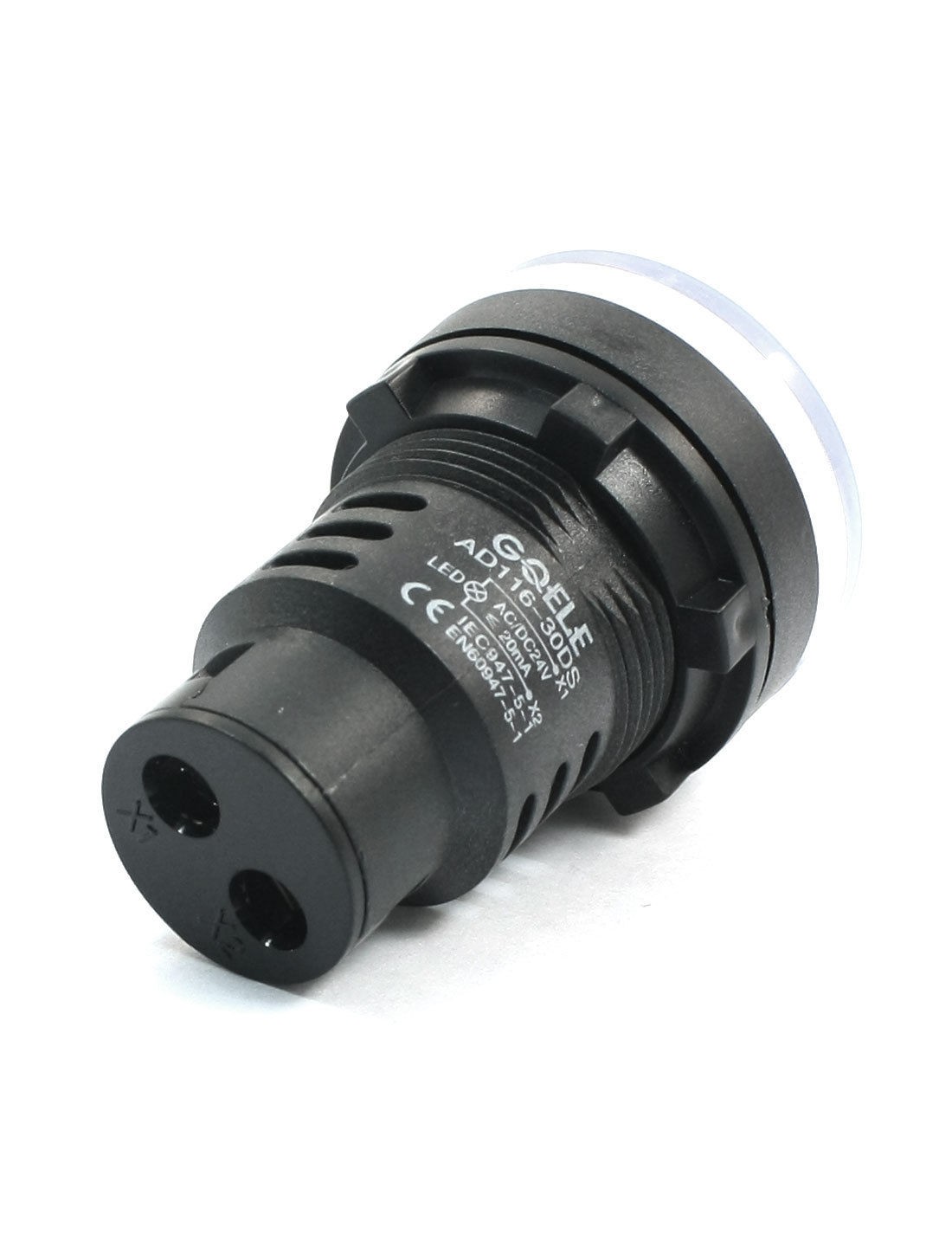 Product Name LED Indicator Light Model No. AD116-30DS Voltage AC/DC24V Current 20mA (Max.) Mounting Thread Dia 30mm / 1.2" Material Plastic, Electric Components Light Color White Main Color Black, White Size 54 x 36mm/ 2.1" x 1.4" (L*D) Net Weight 26g PakcageContent 1 x LED Indicator Light - Reviews