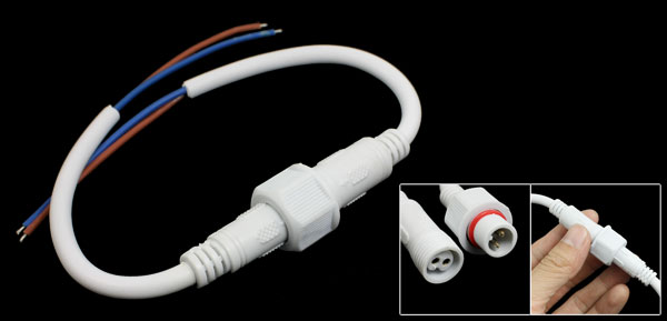 Product Name 2 Pin Waterproof Connector Connect Type Male to Female Plug Material (External) PVC Plastic Color White Cable Outside Diameter 5.5mm / 0.22" Total Length 40cm/ 15.7" Weight 28g Package Content 1 x 2 Pin Waterproof Connector Cable - Reviews