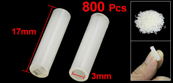 Product Name LED Spacers Inside Diameter 3mm Length 17mm Total Size 17 x 4mm/ 21/32" x 5/32" (H*D) Material Nylon Color White Net Weight 116g Package Content 800(±2%) x LED Spacers - Reviews