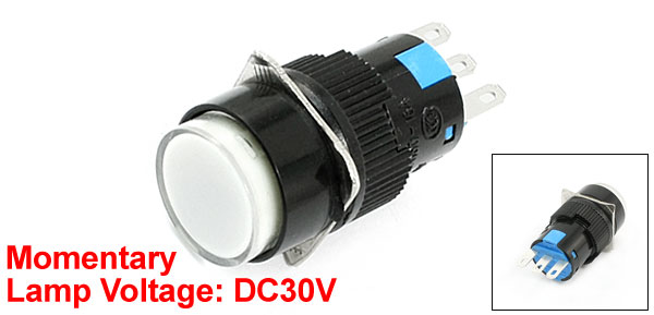 Item Name Push Button Switch Contact Type Momentary SPDT Working Voltage AC 250V 5A Light Color White Lamp Voltage DC30V Mounting Thread Diameter 15mm / 0.6" Button Cap Dia 15mm /0.6" Terminals 3 Pin Overall Size 4 x 1.8 x 1.8cm/1.6" x 0.7" x 0.7"(L*W*T) Material Plastic, Electronic Parts Weight 7g Package Content 1 Pcs x Push Button Switch - Reviews