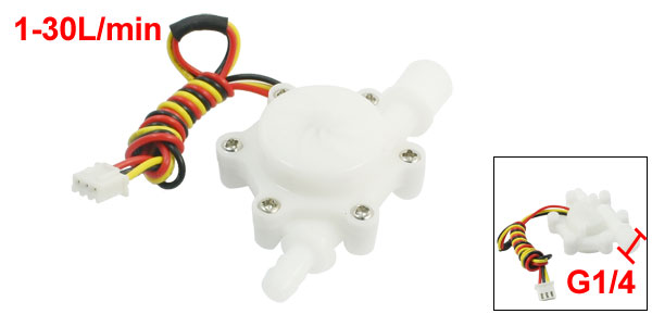 White Plastic 1.75Mpa 1L/min-30L/min G1/4 Wire Hall Water Flow Sensor