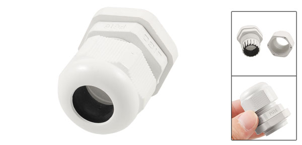 DetailsWhite Plastic 22.5mm Thread Outside Dia PG16 Waterproof Cable Connector  Product Name Cable Gland Model PG16 Degree of Protection IP67 (Water Proof) Cable Range 10 - 14mm / 0.39"- 0.55" Thread O.D. 22.5mm / 0.89“ Thread Length 10mm / 0.39” Total Size 30 x 40mm / 1.18" x 1.57" (D*H) Material Plastic Color White Weight 17g Package Content 1 x Cable Gland
