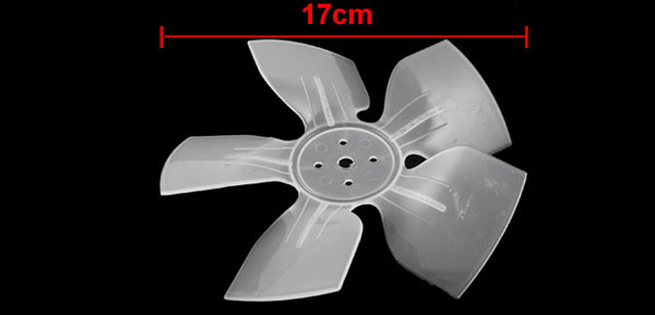Product Name Fan Blade Type 5 Blades Fan Diameter 17cm/6.7" Shaft Hole Dia 7mm/0.28" Small Hole Dia 3.5mm/0.14" Diagonal Hole Center Distance 25mm/1" Parallel Hole Center Distance 18mm/0.7" Fan Thickness 1.4mm/0.055" Material Plastic Color White Net Weight 23g Package Content 1 x Fan Blade - Reviews