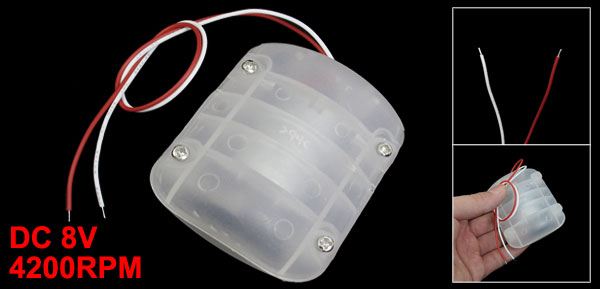 DetailsWhite Plastic Shell DC 8V 4200RPM Vibrating Vibration Motor for Massage Cushion  Product Name Vibration Motor Rated Voltage DC 8V Speed(no load) 4200RPM Body Size 67 x 57 x 29mm/ 2.6" x 2.2" x 1.1"(L*W*T) Cable Length 22cm/ 8.7" Main Color White Material Metal, Plastic Weight 68g Package 1 x Vibration Motor