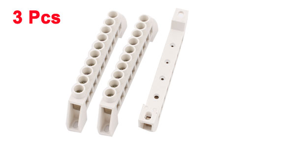 White Plastic Single Row 10 Position Wire Connector Screw Terminal Block 3pcs