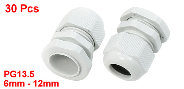 White Plastic Waterproof Cable Glands Joints Connectors PG13.5 30Pcs