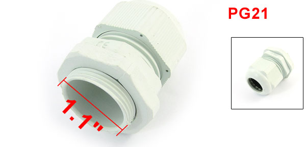 Product Name Cable Gland Model PG21 Degree of Protection IP67 (Water Proof) Cable Range 9-16mm / 0.35"- 0.63" Thread O.D. 27mm / 1.1“ Thread Length 23mm / 0.47” Total Size 38 x 47mm / 1.5" x 1.85" (D*H) Material Plastic Color White Weight 25g Package Content 1 x Cable Gland - Reviews