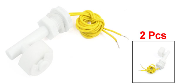 Product Name Float Switch Max Contact Rating 10W Max Switching Voltage 100V DC Max Switching Current 0.5A Max Breakdown Voltage 220V DC Max Carry Current 1.0A Max Contact Resistance 100mΩ Temperature Rating -10 ~ +60 °C / +85 °C Float Ball Material PP Float Body Material PP Float Ball Size(Approx) 10 x 25mm / 0.4" x 1"(L*D) Thread Dia(Approx) 11mm / 0.4" Hex Nut Diameter 16mm / 0.63" Bottom Clip Dia(Approx) 20mm / 0.8" Body Total Size 54 x 28mm / 2.1" x 1.1"(L*W) Cable Length 37cm / 14.6" Color White, Yellow Weight 26g Package Content 2 x Float Switches - Reviews