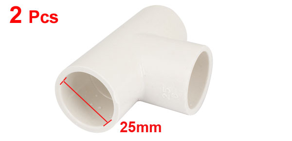 White PVC Three Way Tee Fitting Wire Pipe Connectors 25mm Inner Dia 2 Pcs
