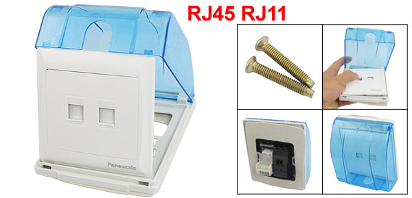 White RJ45 Computer RJ11 Telephone Wall Outlet Plate w Blue Splash Proof Box