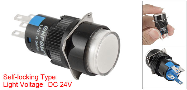 Item Name Push Button Switch Model LAS1-A Connection Type 1 NO, 1 NC Contact Type Self-locking Switch Voltage AC 220V 5A AC 250V 5A Light Voltage DC 24V Light Color White Mounting Thread Dia. 1.6cm/ 0.6" Button Cap Dia. 1.6cm/ 0.6" Size 1.8 x 4.1cm / 0.7" x 1.6" (D*L) Material Plastic, Metal Net Weight 7g Package Content 1 x Illuminated Push Button Switch - Reviews