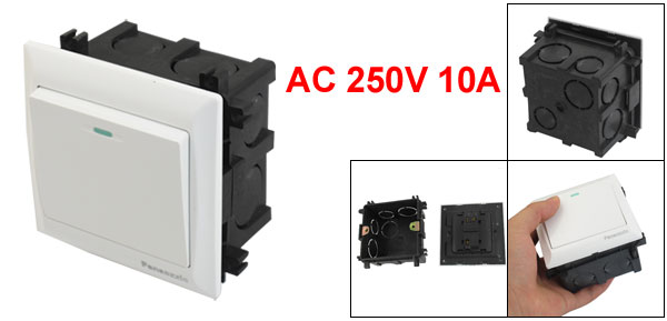 White Shell AC 250V 10A 1 Gang Wall Panel Switch w Flush Mount Box