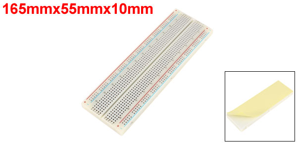 Product Name Breadboard Breadboard Type 830 Points Breadboard Size 165 x 55 x 10mm / 6.5" x 2.2" x 0.4" (L*W*T) Material Plastic, Metal Color White Net Weight 95g Package Content 1 x Breadboard