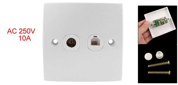 Product Name RJ11 TV Socket Wall Plate Shape Square Material Plastic, Electronic Parts Color White Size 8.6 x 8.6 x 0.7cm/3.4'' x 3.4'' x 0.3'' (L*W*T) Power AC 250V, 10A Weight 45g Package Content 1 x RJ11 TV Socket Wall Plate