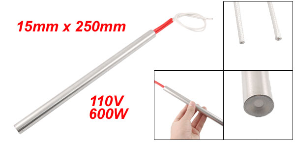 Product Name Cartridge Heater Material Stainless Steel, PVC, Nylon Rated Voltage AC 110V Power 600W Heater Size (Approx.) 15 x 250mm/ 0.59'' x 9.8'' (D * L)