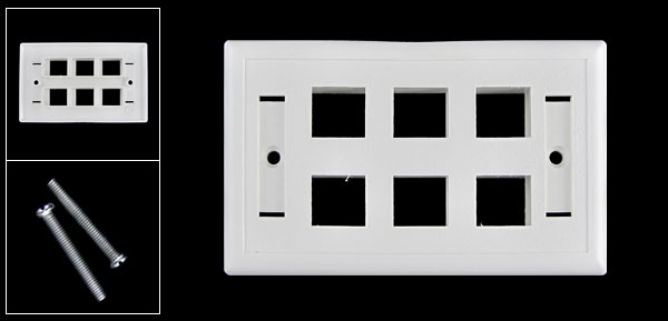 Product Name Switch Plate Material Plastic Openings 6-Gang (Each Size 9/16'' x 5/8'') Color White Plate Size 4.5''(L) x 2.75''(W) x 0.25''(T) Weight 23g Package Content 1 x 6-Gang Switch Plate