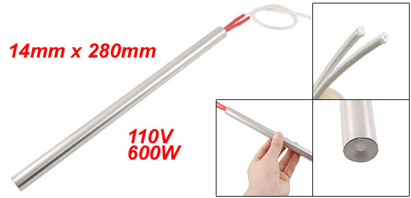 Product Name Cartridge Heater Material Stainless Steel, PVC, Nylon Rated Voltage AC 110V Power 600W Heater Size (Approx.) 14 x 280mm/ 0.55'' x 11'' (D * L)