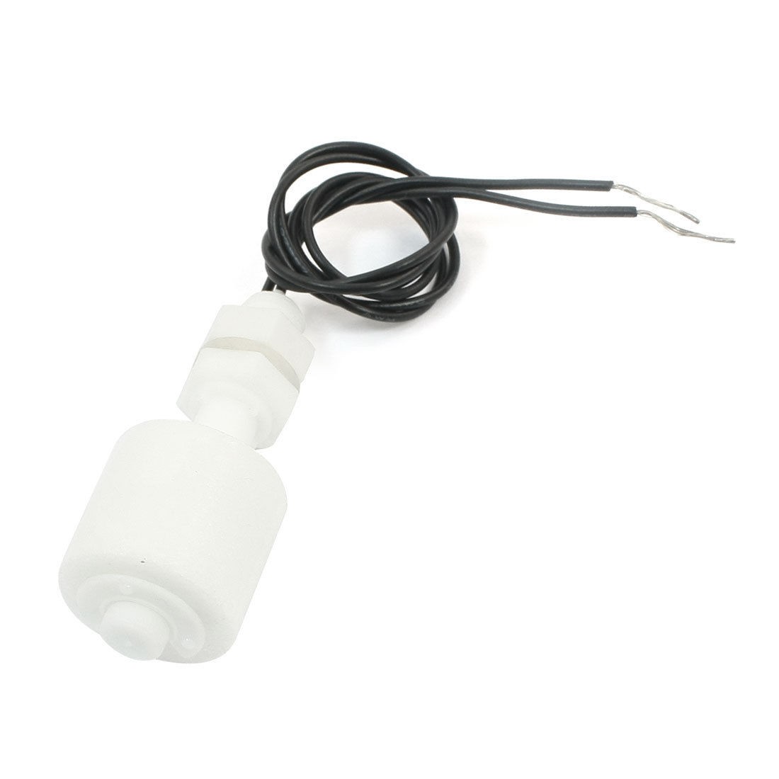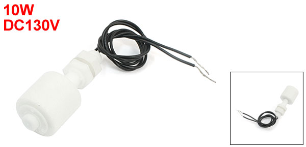 DetailsWhite Wired PP 22x24mm Water Level Sensor Vertical Liquid Float Switch  Product Name Float Switch Max Contact Rating 10W Max Switching Voltage DC130V Model SEN-PPI35 Max Switching Current 0.5A Max Breakdown Voltage DC220V Max Carry Current 1.0A Max Contact Resistance 100mΩ Temperature Rating -10 ~ +60 °C / +85 °C Float Ball Material PP Float Body Material PP Float Ball Size(Approx) 22 x 24mm / 0.87" x 0.94"(L*D) Thread Dia(Approx) 10mm / 0.4" Hex Nut Diameter 14.5mm / 0.57" Bottom Clip Dia(Approx) 17mm / 0.67" Body Total Length 60mm / 2.4" Cable Length 30cm / 11.8" Color White, Black Net Weight 15g Package Content 1 x Float Switch