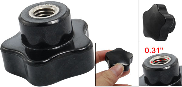 Product Name Star Knob Type Screw On Head Diameter 38mm/1.5" Female Thread Diameter 8mm/0.31" Female Thread Depth 17mm/0.67" Total Height 26mm/1.0" Material Metal & Plastic Color Black Weight 31g Package Content 1 x Star Knob - Reviews