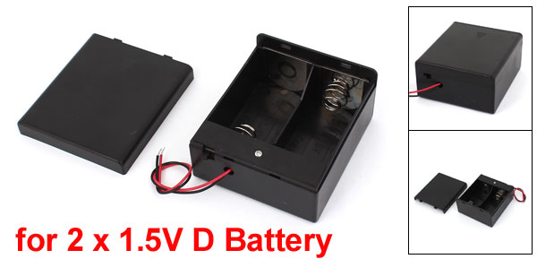 Wire Leaded Rectangle Black Plastic 2 x 1.5V D Size Battery Holder Case Storage