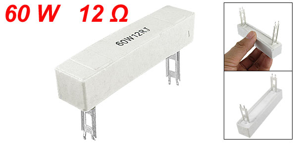 Product Name Cement Resistor Body Material Ceramic, Cement Power 60W Resistance 12Ω Tolerance ±5% Body Size (Approx.) 88 x 19 x 17mm / 3.4" x 0.74" x 0.67" (L * W * H) Pin Size (Approx.) 30 x 10mm / 1.2" x 0.4"(L*W) Color White Weight 62g Package Content 1 x Cement Resistor - Reviews