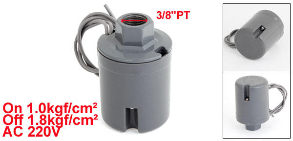 Product Name Water Pump Pressure Control On 1.0kgf/cm² Off 1.8kgf/cm² Max. Voltage AC 220V Power 1.8KW Female Thread Dia. 16mm/ 3/8"PT Total Size 7.5 x 4.8cm/ 3" x 1.9"(L*W) Cable 27cm/ 10.6" Material Metal, Plastic Main Color Gray Weight 108g Package Content 1 x Water Pump Pressure Control - Reviews