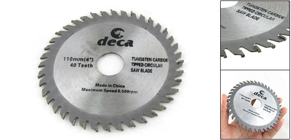 Product Name Circular Saw Blade Material Metal, Tungsten Carbide Tip Color Gray, Black Outside Diameter 110mm / 4" Arbor Hole Diameter 20mm / 0.8" Teeth Quantity 40 Max. Speed 6500 RPM Net Weight 60g Package Content 1 x Circular Saw Blade