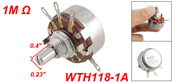 Product Name Carbon Potentiometer Model WTH118-1A Technology Carbon Composition Rated Power 2 W Resistance Value 1MΩ Tolerance 5% Turn Number Single Turn Terminals Number 4 Features Round Shaft Body Size 27.5 x 16mm / 1.1" x 0.63"(D * H) Screw Thread Dia. 9.85mm / 0.39" Shaft Diameter 5.90mm / 0.23" Shaft Length 10mm / 0.4" Total Length 35.5mm / 1.4" Color As Picture Show Weight 21g Package Content 1 x Carbon Potentiometer - Reviews