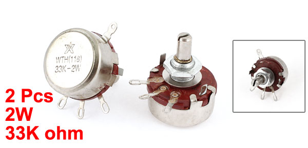 Product Name Carbon Potentiometer Model WTH118-1A Technology Carbon Composition Rated Power 2W Resistance Value 33K ohm Tolerance 5% Turn Number Single Turn Terminals Number 4 Features Round Shaft Body Size 28 x 16mm / 1.1" x 0.6"(D * H) Screw Thread Dia. 10mm / 0.39" Shaft Diameter 6mm / 0.24" Shaft Length 9mm / 0.35" Total Length 33mm / 1.3" Color Red, Silver Tone Net Weight 48g Package Content 2 x Carbon Potentiometer - Reviews