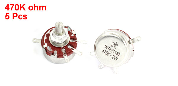 Product Name Carbon Potentiometer Model WTH118 Technology Carbon Composition Rated Power 2W Resistance Value 470K ohm Turn Number Single Turn Terminals Number 4 Features Round Shaft Body Size 28 x 16mm / 1.1" x 0.63"(D * H) Screw Thread Dia. 10mm / 0.4" Shaft Diameter 6mm / 0.24" Shaft Length 10mm / 0.4" Total Length 35mm / 1.4" Color Red, Silver Tone Net Weight 106g Package Content 5 x Carbon Potentiometer - Reviews