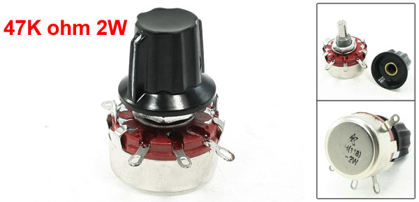 Product Name Carbon Potentiometer Model WTH118 Technology Carbon Composition Rated Power 2W Resistance Value 47K ohm Tolerance 5% Turn Number Single Turn Terminals Number 4 Features Round Shaft Potentiometer Body Size 28 x 15mm / 1.1" x 0.6"(D * H) Potentiometer Total Height 35mm / 1.4" Rotary Knob Cap Size 25 x 20mm/1" x 0.8"(Max.D*H) Screw Thread Dia. 10mm / 0.4" Shaft Diameter 6mm / 0.24" Shaft Length 9mm / 0.35" Color Red, Black, Silver Tone Net Weight 31g Package Content 1 x Carbon Potentiometer - Reviews