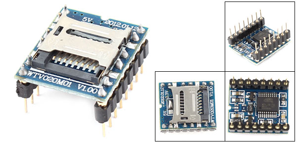 Main Color Silver Tone, Blue Brand DMiotech Net Weight 5g Country of Manufacture CHINA Model WTV020-SD-16P Package Content 1 x SD Card Voice Module Material Electric Parts Operating voltage: DC 2.5-3.6V Size 21 x 18mm / 0.8" x 0.7"(L*W) - Reviews