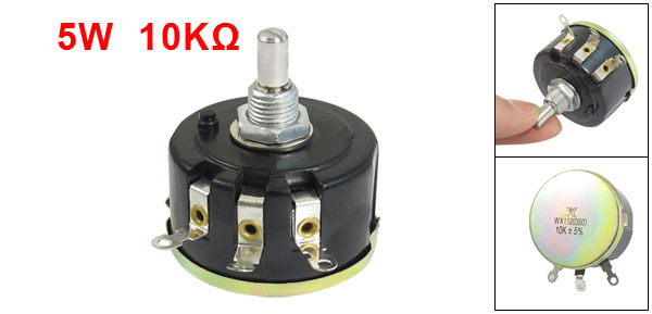 Product Name Wire Wound Potentiometer Model WX050 Type Single Turn Rated Power 5W Resistance Value 10K ohm Tolerance 5% Technology Wire Wound Terminals Number 3 Body Size 43 x 25mm / 1.7" x 1"(D * H) Screw Thread Dia. 10mm / 0.4" Shaft Diameter 6mm / 0.24" Shaft Length 10mm / 0.4" Total Length 46mm / 1.8" Color Black, Silver Tone Net Weight 40g Package Content 1 x Carbon Potentiometer - Reviews