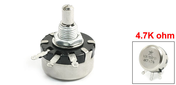 WX110(010) 4.7K Ohm 6mm Round Metal Shaft Single Turn Wire Wound Potentiometer