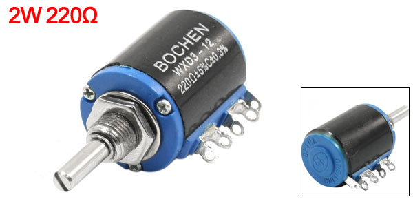 Product Name Wire Wound Potentiometer Model WXD3-12-2W Type Multi Turn Resistance Value 220 ohm Tolerance 5% Rating Power 2W Technology Wire Wound Terminals 3 Solder Lugs Body Size 26 x 21mm / 1.1" x 0.8"(H*D) Screw Thread Dia. 8mm / 0.31" Shaft Diameter 4mm / 0.16" Shaft Length 12mm / 0.47" Total Length 48mm / 1.9" Main Color Black, Blue Weight 18g Package Content 1 x Wire Wound Potentiometer - Reviews