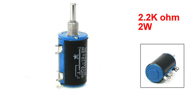 Product Name Wire Wound Potentiometer Model WXD3-13 Type Multiturn Technology Wire Wound Terminal Number 5 Rated Power 2W Resistance Value 2.2K ohm Tolerance 5% Body Size 37 x 20mm / 1.47" x 1.78"(L * D) Screw Thread Dia. 8mm / 0.3" Shaft Diameter 4mm / 0.16" Shaft Length 12mm/0.5" Total Length 58mm/ 2.3" Color Black, Blue, Silver Tone Net Weight 20g Package Content 1 x Wire Wound Potentiometer - Reviews