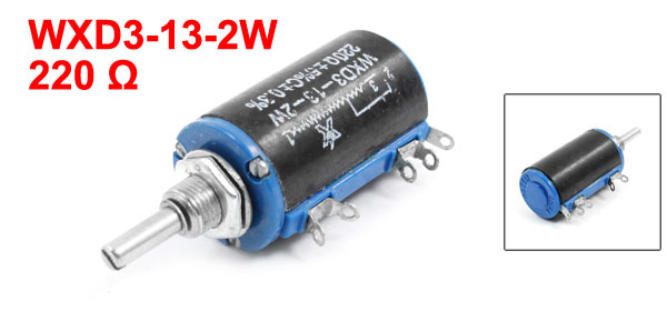 Product Name Wire Wound Potentiometer Model WXD3-13-2W Type Multiturn Technology Wire Wound Terminal Number 5 Rated Power 2 W Resistance Value 220 Ω Tolerance 5% Body Size 36 x 21mm / 1.4" x 0.8"(L* D) Screw Thread Dia. 7.5mm / 0.3" Shaft Diameter 4mm / 0.16" Total Length 58mm/ 2.3" Color Blue, Black Weight 30g Package Content 1 x Wire Wound Potentiometer - Reviews