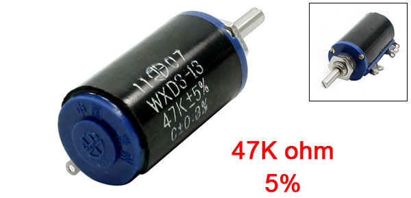 Product Name Wire Wound Potentiometer Model WXD3-13 Type Multi Turn Resistance Value 47K ohm Tolerance 5% Technology Wire Wound Terminals 3 Solder Lugs Body Size 36 x 21mm / 1.4" x 0.8"(H*D) Screw Thread Dia. 8mm / 0.31" Shaft Diameter 4mm / 0.16" Shaft Length 12mm / 0.47" Total Length 58mm / 2.3" Color Black, Blue Net Weight 24g Package Content 1 x Wire Wound Potentiometer - Reviews