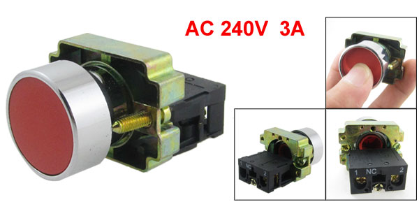 Product Name Push Button Switch Model No. XB2-BA42 Contact Type 1 NC(Normally Close) Action Type Momentary Ith 10A Ui 600V Uimp 6KV Rated Voltage & Current(AC15) AC 240V, 3A Panel Cutout Diameter 22mm / 0.87"(7/8") Fit Panel Thickness(Adjustable) Max 9mm / 0.35" Button Diameter 28mm / 1.1" Overall Size(Approx.) 40 x 30 x 54mm / 1.6'' x 1.2'' x 2.1'' (L*W*H) Material Plastic, Metal Color Black ,Red Net Weight 52g Package Content 1 x Push Button Switch - Reviews