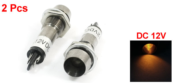 XD8-1 DC 12V 8mm Metal Shell Yellow LED Indicator Power Signal Light 2 Pcs