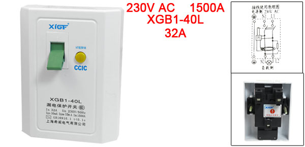 Product Name Circuit Breaker Model XGB1-40L Material Plastic, Electric Components Rated Voltage 230V AC Rated Circuit Breaking Capacity 1500A Rated Current 32A Rated Residual Operating Current( I ^n) ≤ 30mA Rated Residual Non-operation Current( I ^no) ≤ 15mA Residual Current Off-time ≤ 0.1s Frequency 50Hz Total Size (Approx.) 11 x 8.5 x 5.5cm/4.3" x 3.3" x 2.2"(L*W*H) Number of Poles 1 Color White Weight 208g Package Content 1 x Earth Leakage Circuit Breaker