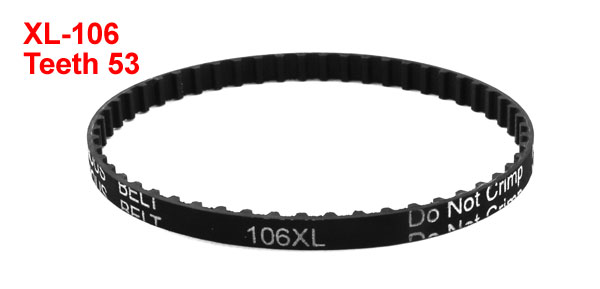 Product Name Timing Belt Type XL-106 Number of Teeth 53 Pitch 5.08mm Belt Width 6.4mm / 0.25" Belt Girth 269.24mm /10.6" Material Rubber Color Black Weight 6g Package Content 1Pcs x Timing Belt - Reviews