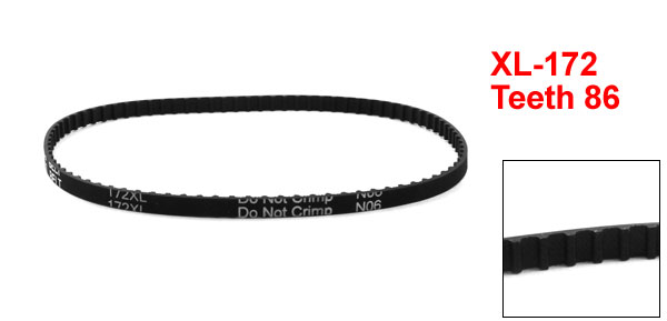 DetailsXL-172 86 Teeth 025 6.4mm Width Black Rubber Cogged Industrial Timing Belt 17.2"  Product Name Timing Belt Type XL-172 Number of Teeth 86 Pitch 5.08mm Belt Width 6.4mm / 0.25" Belt Girth 436.88mm /17.2" Material Rubber Color Black Weight 8g Package Content 1Pcs x Timing Belt